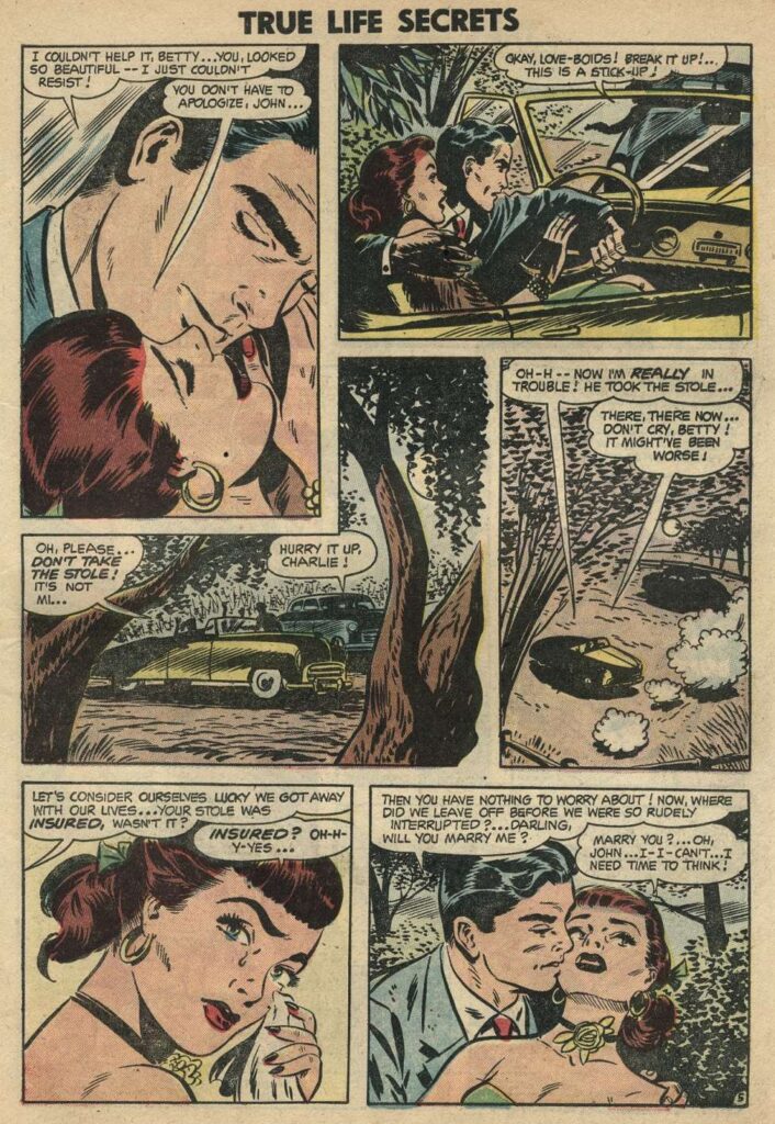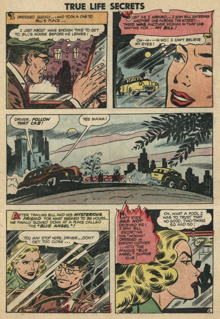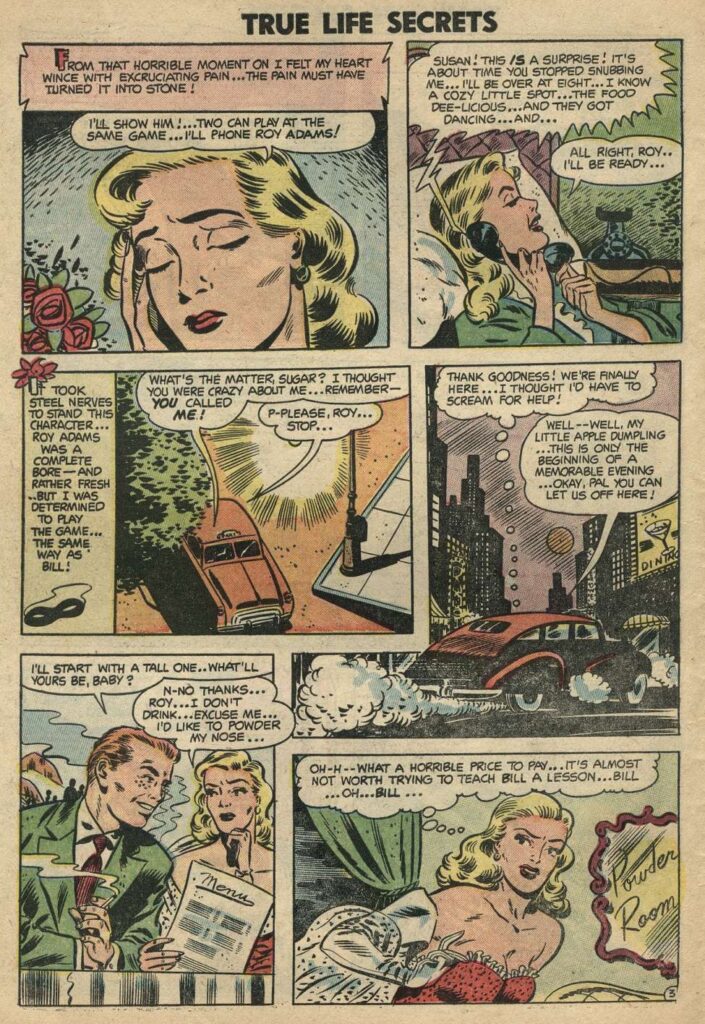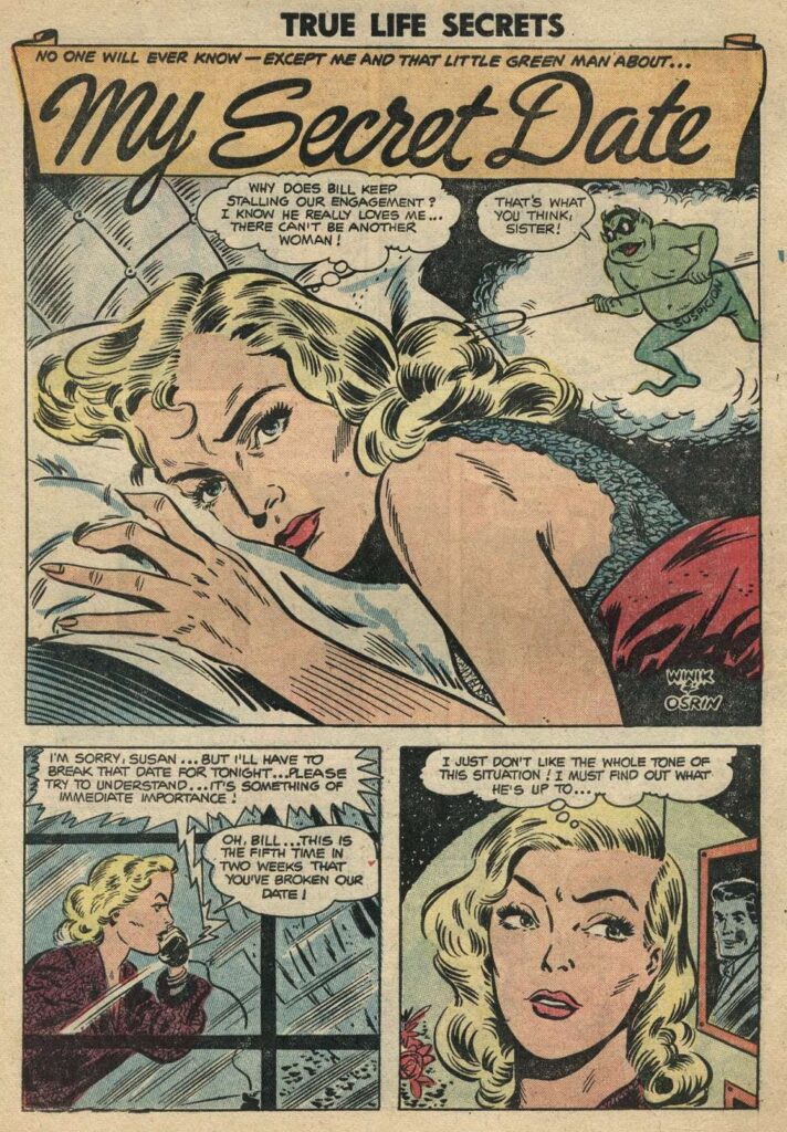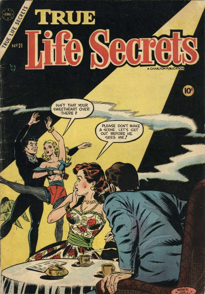 True Life Secrets was published by Charlton. It contained “lurid” (for the time) romance stories. Leon Winik did the pencil work and Ray Orsin did the ink work for the cover.