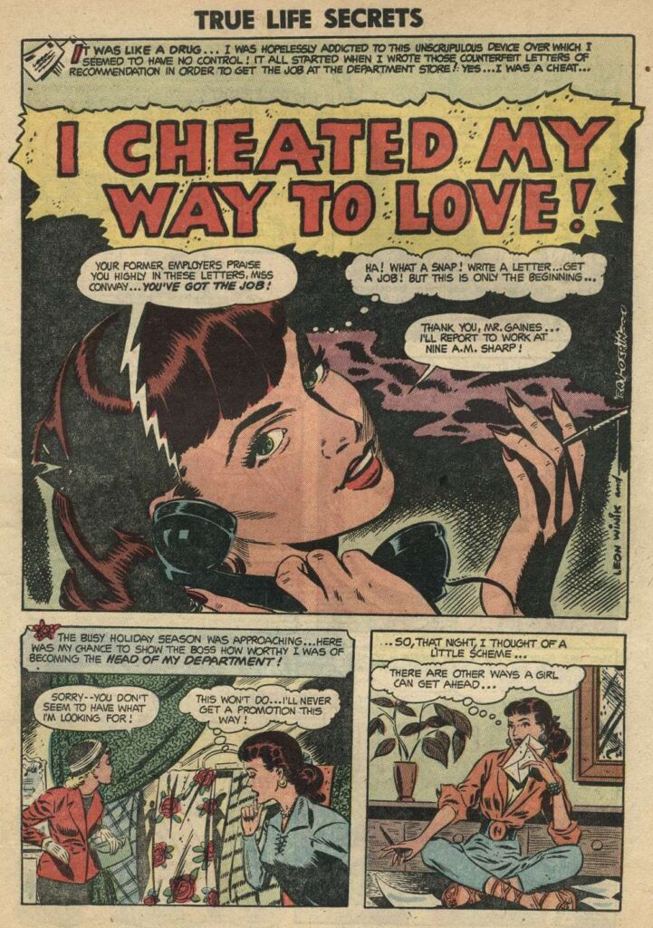 I Cheated My Way to Love! was a story in this issue that Leon Wink was a part of. The story is by Joe Gil. Leon did the pencil work. Ray Osrin did the inks. The lettering was by Charlotte Jetter.